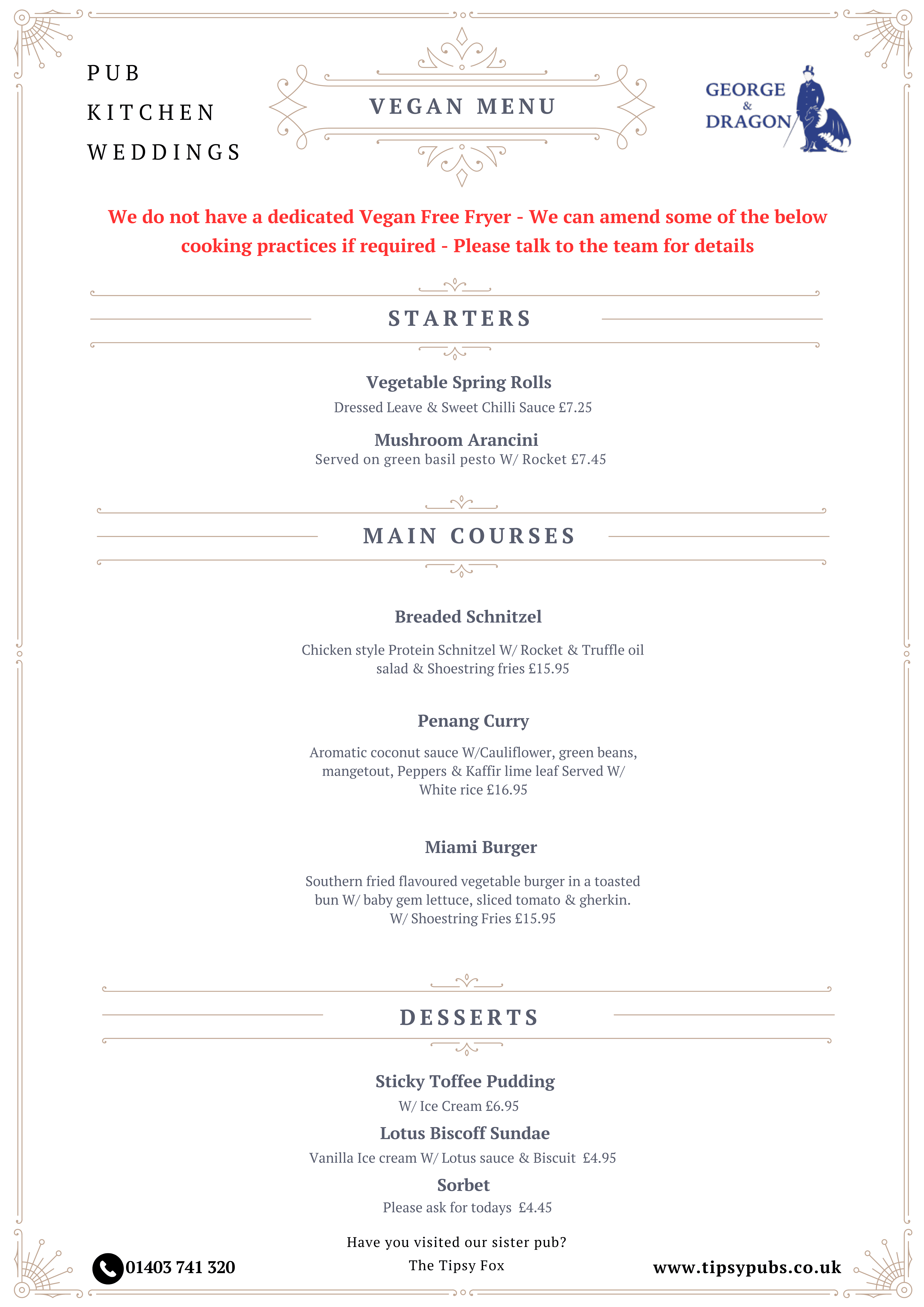 Pop in for a catch-up with friends, a family day out, a quick bite to refuel on a busy day or a cosy dining experience. The Tipsy Fox is perfectly equipped to accommodate all of your requirements.
